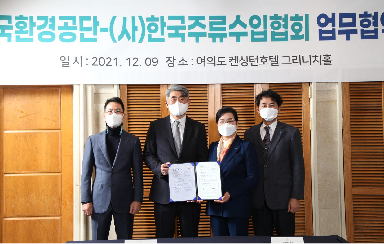 21년 12월 9일(목), 켄싱턴호텔 여의도 그리니치 홀에서 (사)한국주류수입협회와 한국환경공단이 자원순환분야 ESG 가치 창출을 위한 업무협약(MOU)이 체결되었다.